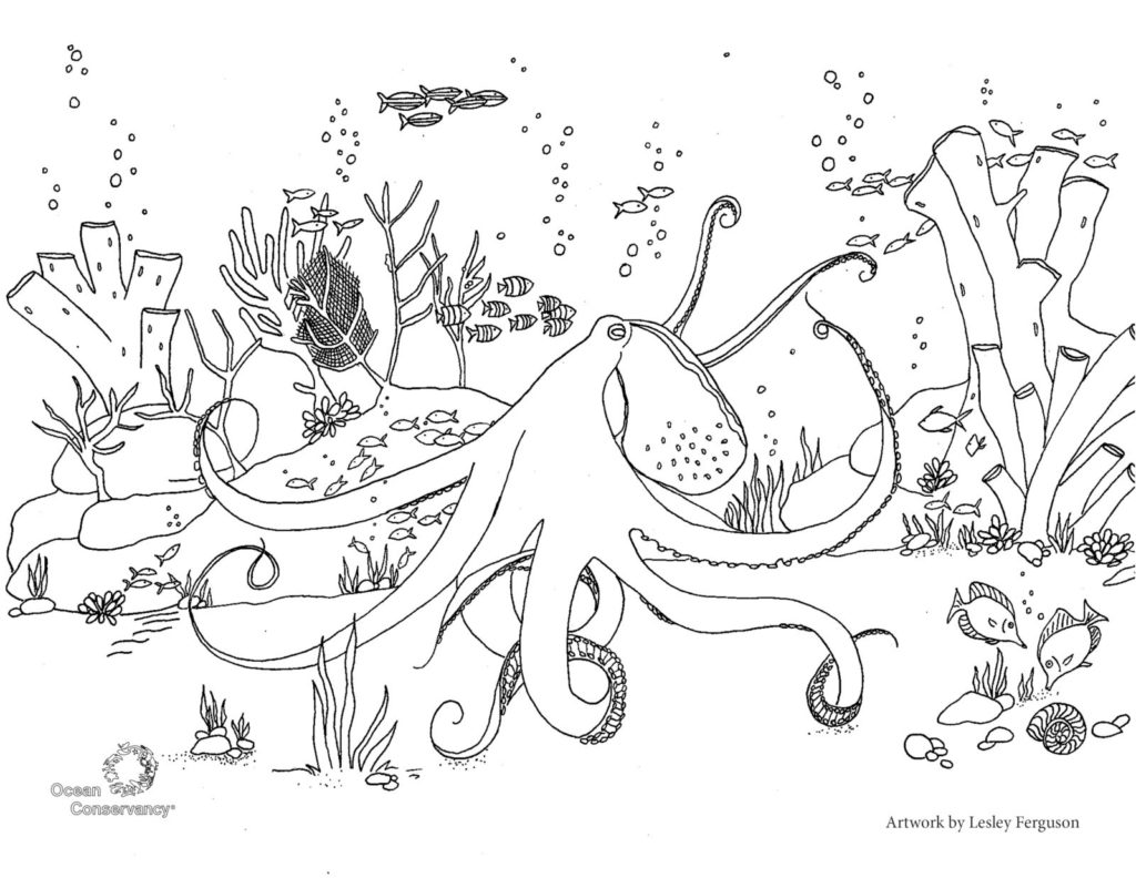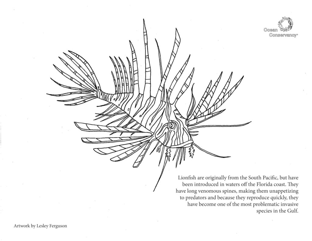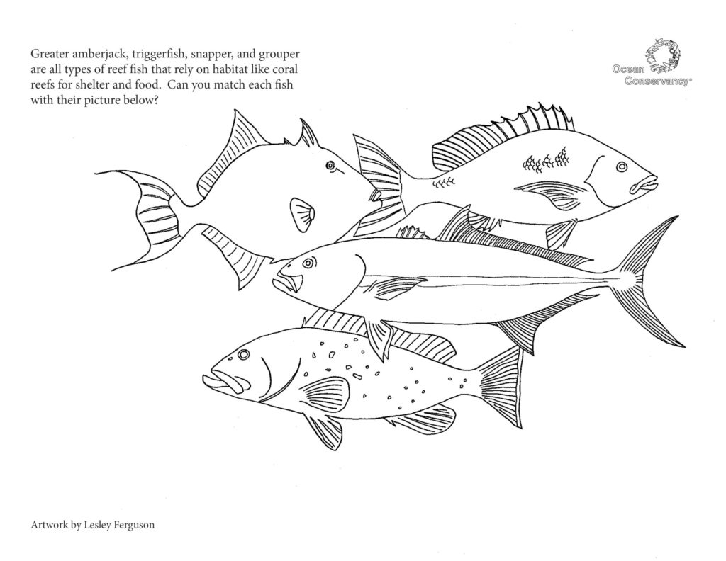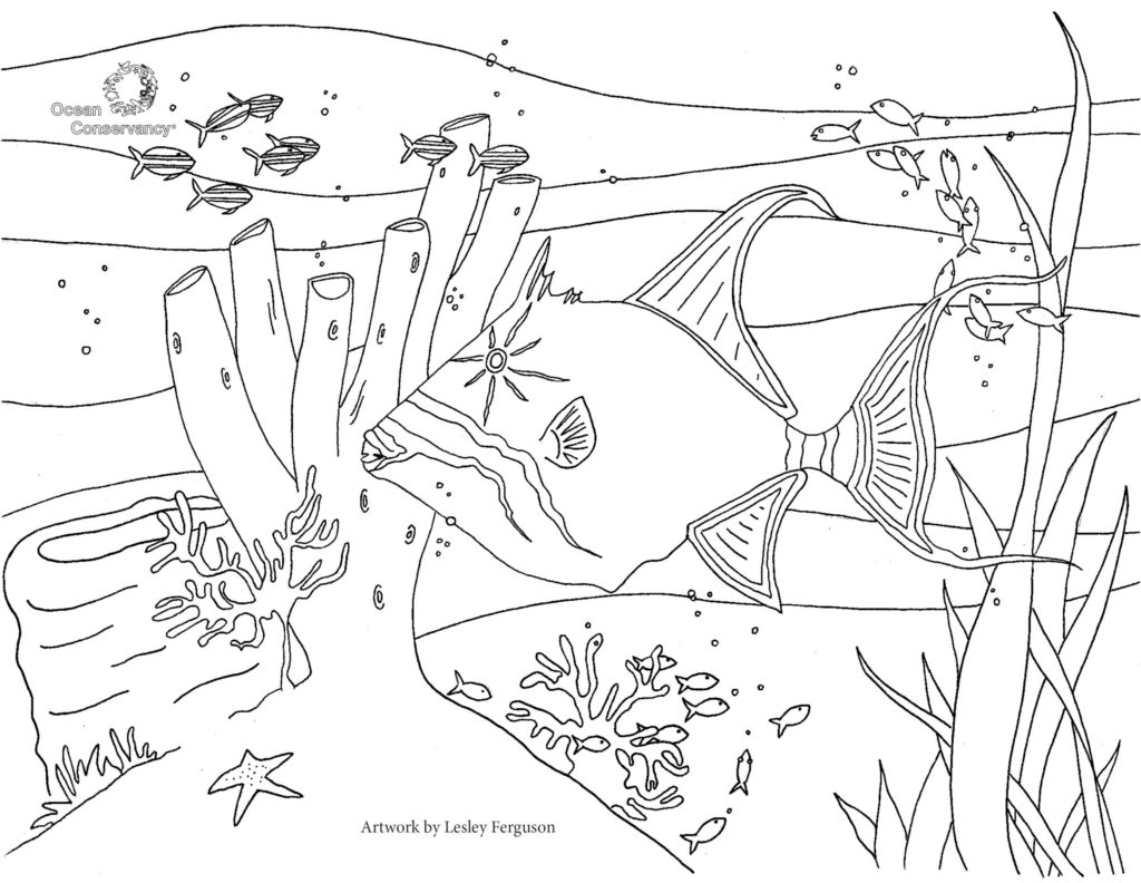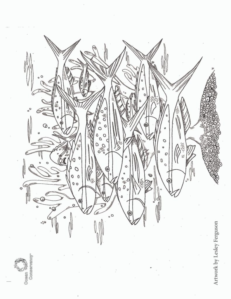 Fish and their ocean neighbors are fascinating. Get to know some of our favorite ocean creatures with the coloring pages below, created by Ocean Conservancy’s own Lesley Ferguson.