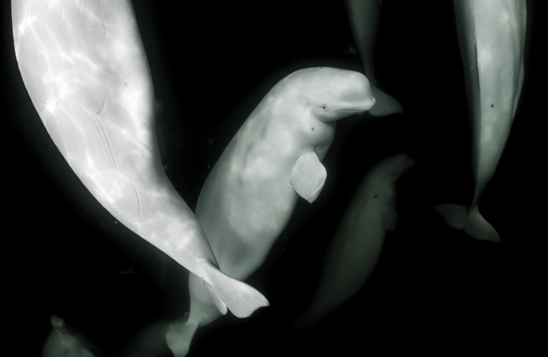 Beluga whales are extremely social animals. They like to gather in groups called pods, which can range from just a few to hundreds of whales. They are very vocal—they use a series of squeaks, clicks and whistles to communicate with each other, find food and figure out where they are under water. You couldn’t listen along, however: some of their noises are at a low frequency that humans can’t hear.